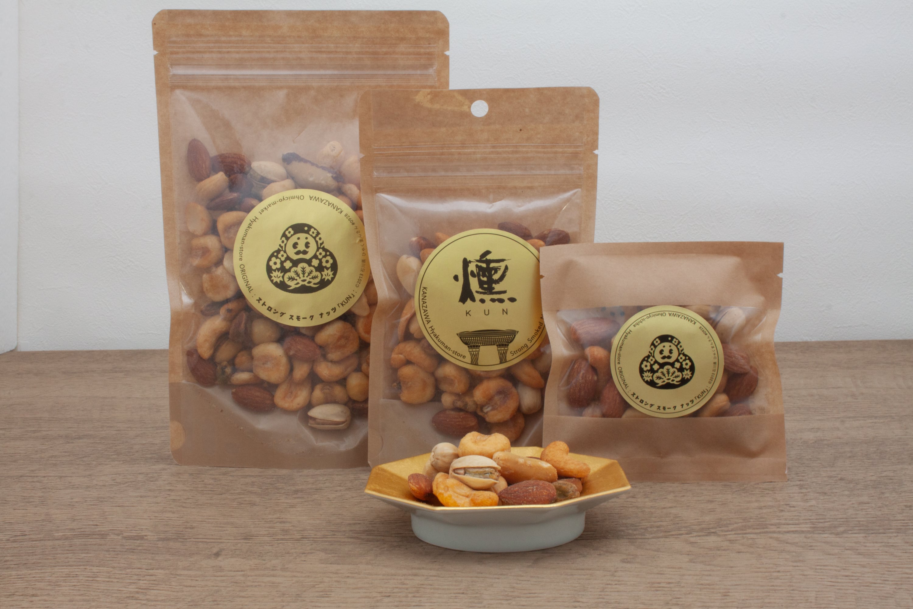 【セット内容】ストロングスモークナッツ(60gx1 , 120gx1 , 30gの5袋セットx1)、ストロングスモークナッツピスタチオx1、スモークポテトチップスx1